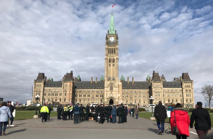 The next day was cold but gloriously sunny, so we left cars behind and headed into the centre of the city on foot. We stopped briefly at the National War Memorial, where that day’s ceremonial honour guards were from the Air Force (the branches of the Canadian Forces rotate this honour). I was saddened to note the addition of 4 Military Police, which is new since October 2014 when Corporal Nathan Frank Cirillo was shot and killed while on sentry duty there at the Tomb of the Unknown Soldier.