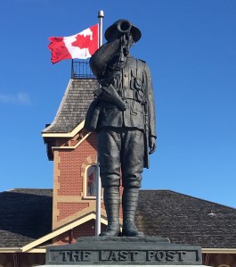 At 6:55, the Last Post was played in Millennium Park, which is the spit of land that juts out into the bay past the grain elevators. A Cry for Peace was recited again by the Town Crier, the Mayor and Mayor elect read the WW1 Honour Roll (the 104 names), then the Legion president recited “In Flanders Fields”. The Grey & Simcoe Foresters Regimental Pipes and Drums played Battle’s Over for the third time in the day’s program.