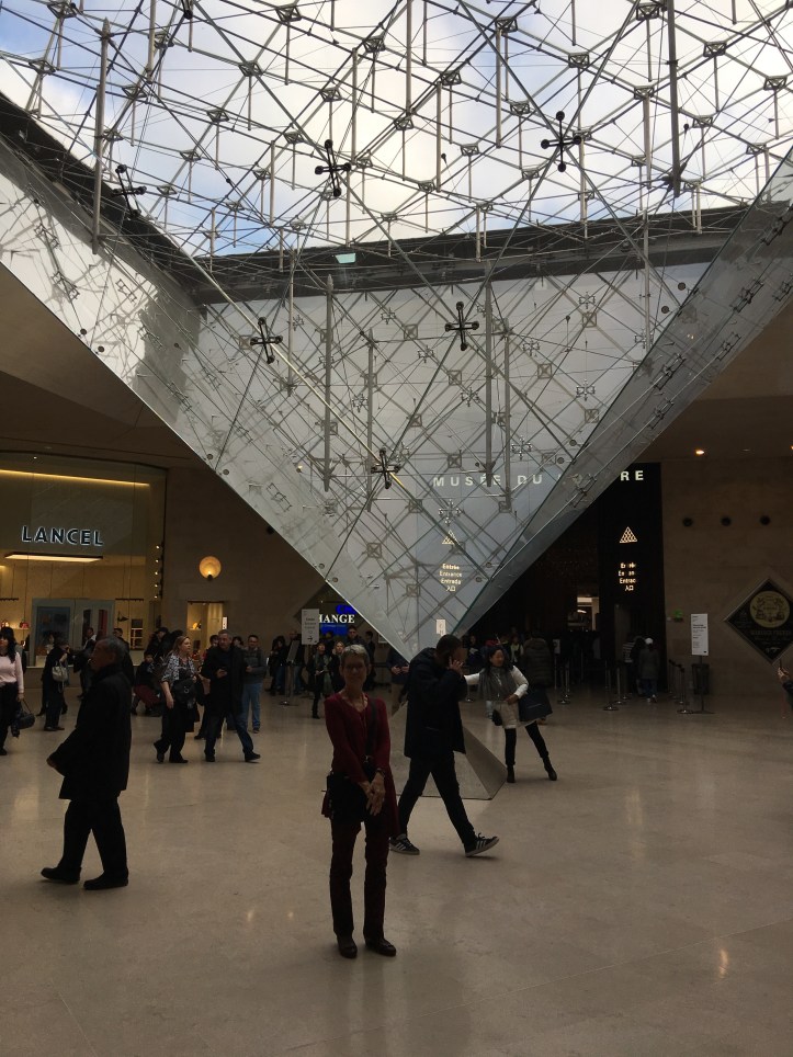 In the morning we toured Paris by bus, stopping briefly at Notre Dame Cathedral and the Eiffel Tower – our goal for the day was The Louvre. Our guide made sure we saw all the “musts” : the Mona Lisa, the Venus de Milo, Michelangelo’s “Prisoners” statues, Winged Victory, DaVinci’s John the Baptist and The Wedding at Canaan, the huge painting of Napoleon’s coronation day, and the 2 ton Egyptian sphinx.