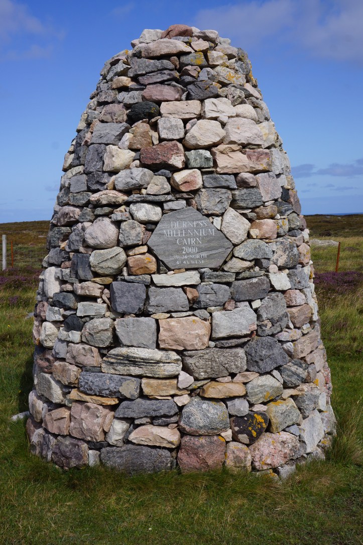 The Durness Millenium cairn shows our location at 58 degrees 34 minutes North and 4 degrees 43 minutes West.