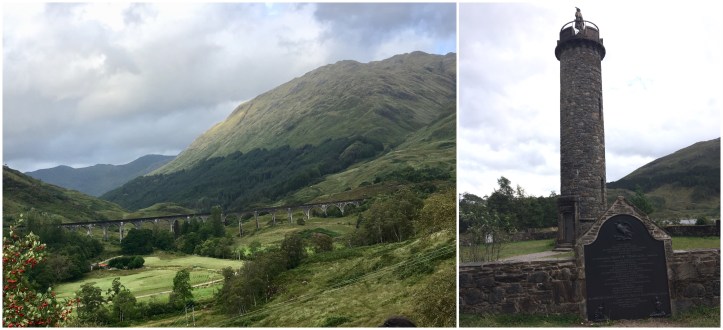 Our last stop of the afternoon was at Glenfinnan, to see the viaduct built by Sir Robert MacAlpine that became the Hogworts Railway in the Harry Potter movies, and the memorial to the Scots clansmen who died fighting in support of Bonnie Prince Charlie.