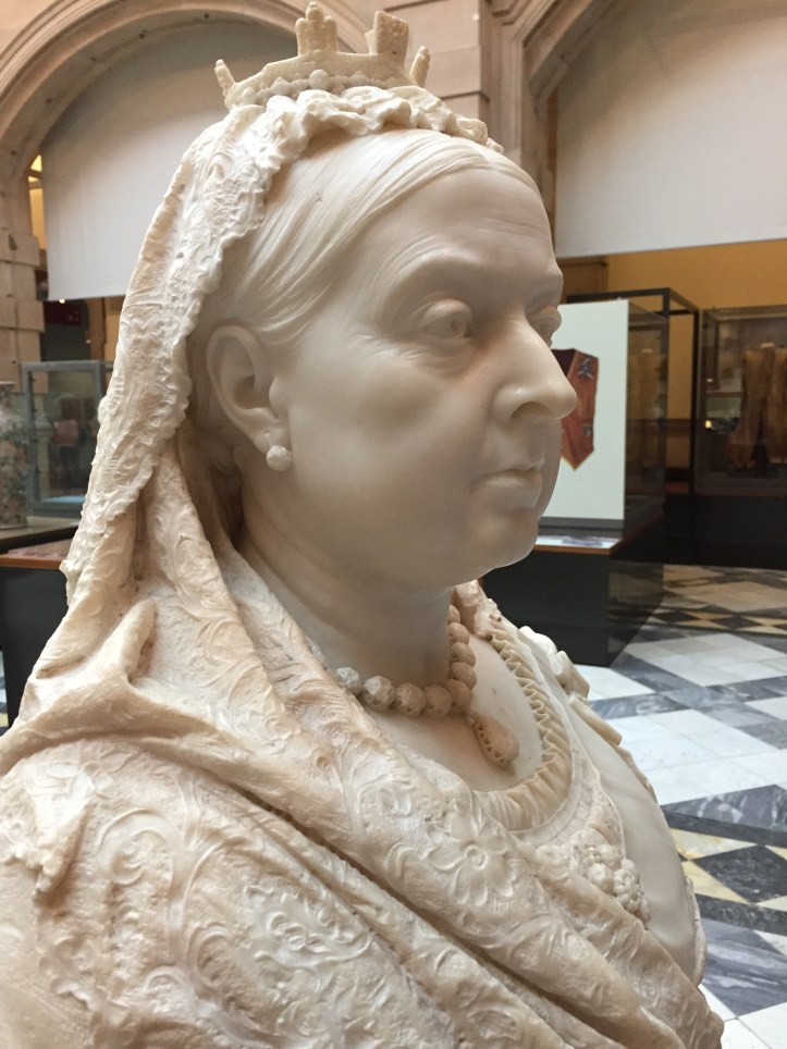 Ted and I spent the better part of the day at the Kelvingrove Museum and Art Gallery (google it!), currently hosting the really interesting Linda McCartney photo exhibition. Ironically, you are not allowed to take photos of her photos. Queen Victoria, depicted below in an 1888 marble by Francis Williamson, might have been amused.