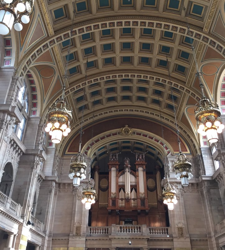 The two highlights of our day at Kelvingrove were a concert on the 2889-pipe pipe organ (built for the 1901 exhibition in Glasgow) and Salvador Dali’s incredible painting “Christ of St John of the Cross”. The painting feels more like resurrection than crucifixion; note the lack of nails, and the way Christ seems to be rising above the fishermen below.