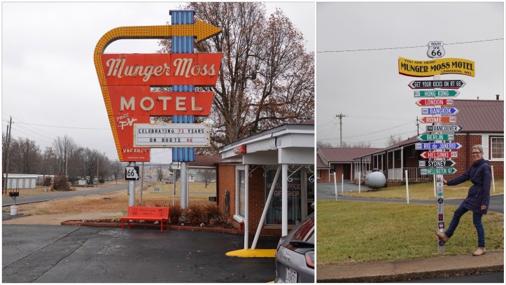 Our next stop was in Lebanon, where we had a photo op at the iconic Munger Moss Motel (73 years on Route 66!) and ate a terrific lunch at the Elm Street Eatery right on the route before checking out the local Route 66 Museum housed in the library.