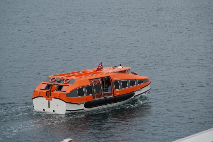 They call it “tendering” – the process of being shuttled from the ship to the shore via boat – and today was the first time we experienced it. The Viking Star’s 200 seat lifeboats double as tender boats, so we arrived on Isla Flamenco (the first island in the city’s causeway) in a bright orange craft and flying the Norwegian flag.