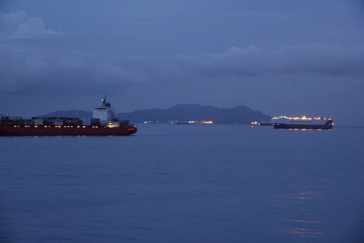 As we set sail for Costa Rica tonight, we had our own personal show of ships of all sizes lit up against the hills, heading for the Panama Canal.