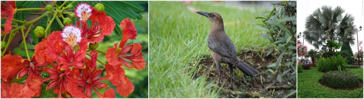 It didn’t rain, but it sure was humid. It was also incredibly lush and green, with herons, pelicans and other very noisy birds everywhere.