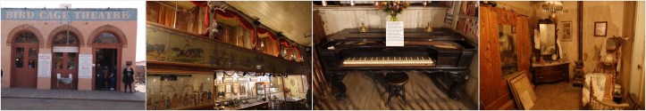 We didn’t take in the re-enactments of the gunfight at the OK Corral, but did tour the Cochise County Courthouse, jail, and gallows, and the Birdcage Theatre, which is the only building in Tombstone still completely original to the day it closed in 1884. Lilly Langtry was one if many famous performers who graced the stage there during the boom years of silver mining, while men with money were “entertained” by the ladies who occupied the “bird cages” (the curtained boxes on the second level of the theatre). A very young Lilian Russell premiered Arthur Lamb’s song “Bird in a Gilded Cage” on the stage here on the theatre’s opening night in 1881.
