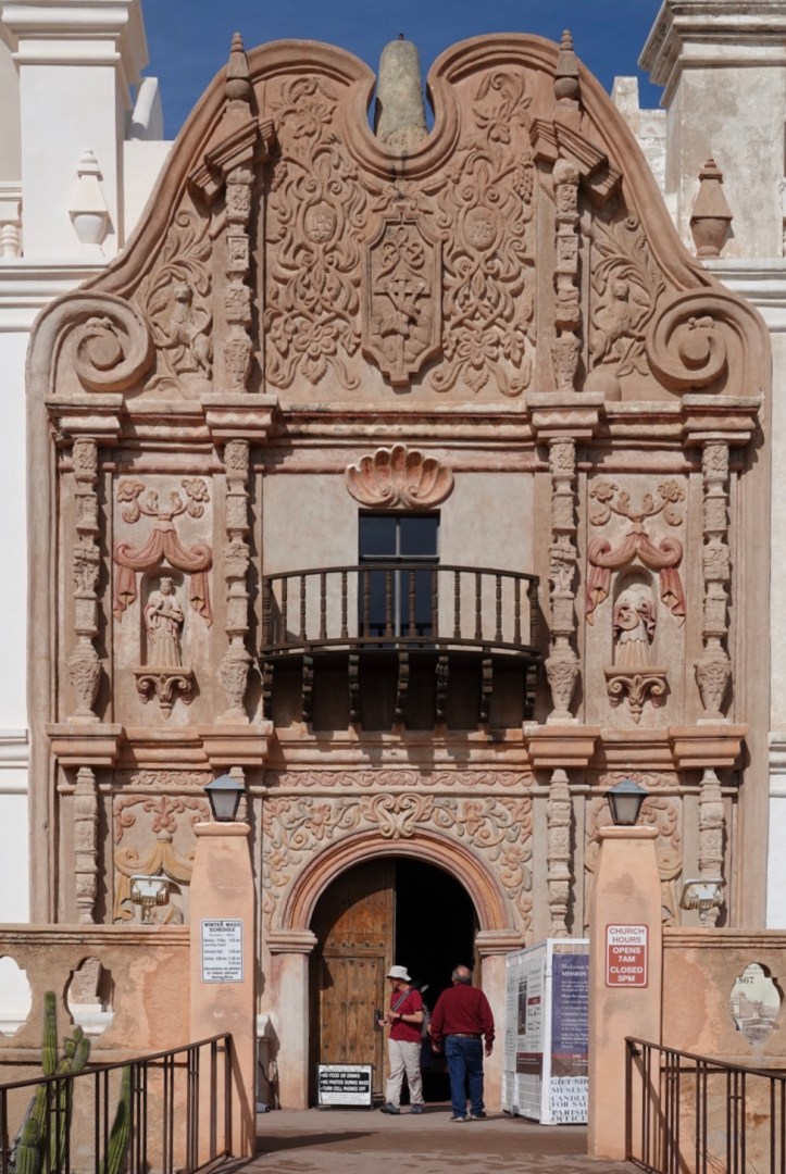 Mission San Xavier Del Bac is just south of Tucson. Here is the area’s connection to Father Eusebio Kino, the Jesuit priest who founded the mission in 1692, and who was represented in many of local artist Ted DeGrazia’s paintings. Father Kino was sent to work with the people living in New Spain; first in Baja California and then in the Sonoran Desert: 16 different agricultural tribes with whom he shared European farming techniques as he converted them to Catholicism. He was involved in founding more than 20 other missions, but San Xavier is the largest. It seems that in many cases the natives sought him out, as opposed to him looking for them. Some of that might have had to do with his reputation for speaking against Spanish interests – opposing both slavery and native peoples’ working conditions in Spanish-run silver mines – and the fact that he brought along livestock as well as seeds for peaches, olives, drought-resistant Sonoran wheat to add to their traditional crops.