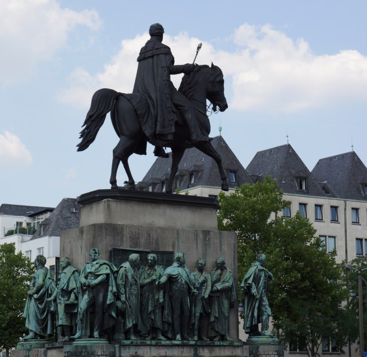 The monument to Friedrich Wilhelm III, King of Prussia during and immediately after the Napoleonic wars. Although the statue commemorates a king who retook the city for Prussia, many years of his rule were sad ones for Cologne and the King; from 1794 until 1814, Cologne was occupied by the French. Apparently at one point Napoleon’s armies dared to use the cathedral as stables for their horses.