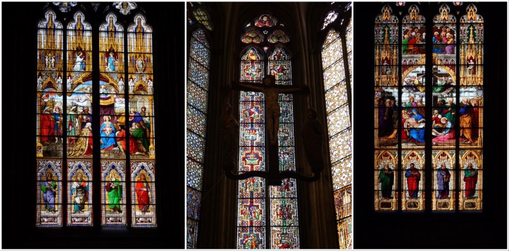 Just a small sample of the medieval stained glass windows, which survived allied air raids in WWII only because they had been removed for safekeeping (so much for the Nazis’ conviction that they were invincible). My mother remembers being in the cathedral sometime in the years between 1945 and 1947, when the windows were still boarded up. Although Mom was not Catholic, she appreciated beautiful artistry; it was one of her regrets that she had never seen the cathedral in its full glory.