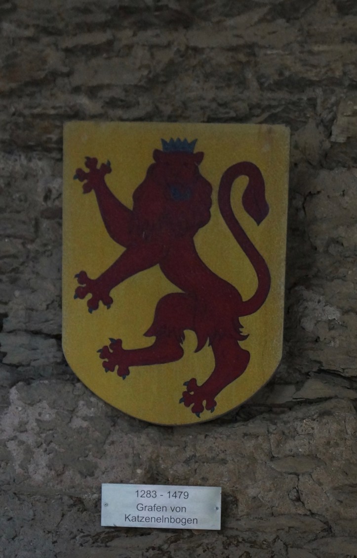 My favourite of the heraldic shields in the castle was that of the Grafen von Katzenelnbogen, which translates as the “Counts of Cats’ Elbows”. The shields are displayed in the Riders’ Stairway.