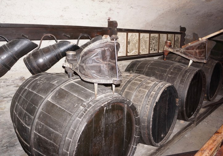 The 17th century wine cellar. Much of the wine stored here was watered down as a beverage drunk by castle inhabitants of all ages, since water was not safe to drink without some alcohol to kill bacteria.