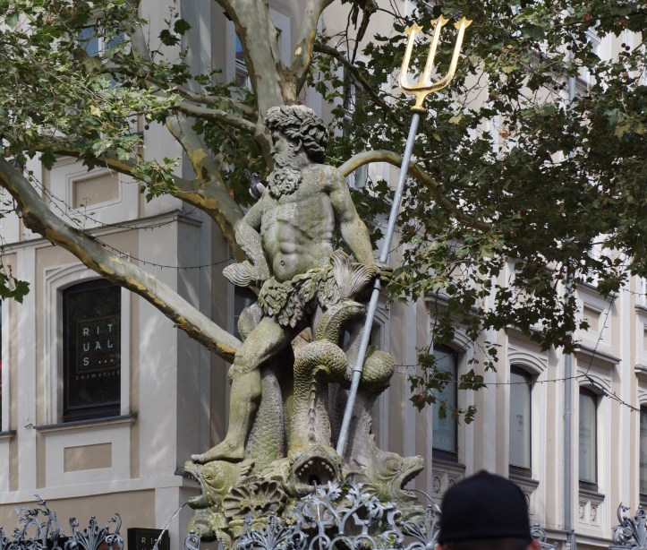 The Gabelmann (“Fork Man”) Fountain in Bamberg is a Baroque image of the Roman God Neptune with his three-pronged fork, erected in 1566. The square surrounding it is a favourite meeting point in the town. Our local contact assured us that we would be perfectly safe exploring the town on our own, since (1) we’d be able to see the statue from every vantage point in town, and (2) absolutely everyone in town would be able to direct us to it if we used its name in the local Frankish dialect: “Gobl-Mo”. All we had to do was return to the fountain by 3:00 in order to board our river boat, which we knew would depart promptly with or without us. Easy peasy.