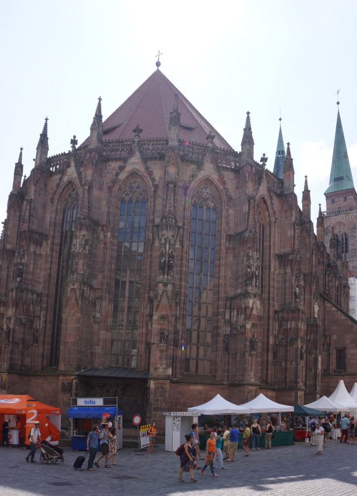 … and the eastern facade of St. Sebaldus, showing its Romanesque details. Again, there is a market going on around the church, a tradition dating back to times when the church really was the centre of the community.