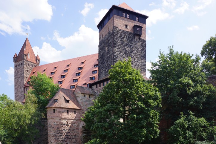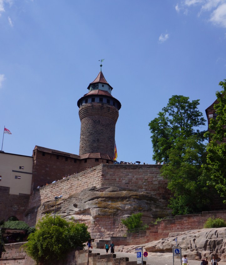 (above) A view of the Sinwellturm (Sinwell Tower) of the medieval Imperial Castle of Nuremberg. This tower, and the castle’s chapel, are the only original portions of the castle. Everything else was damaged in World War II and later restored. The oldest portions of the fortifications dated back to 1027 AD – the Sinwell Tower itself was built in the 1200’s…