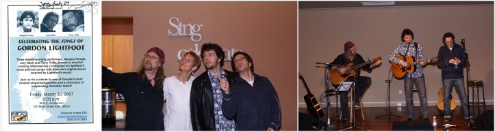 We had talked so much – to everyone who would listen – about our wonderful Lightfoot nights at Hugh’s Room, that it was almost inevitable that we would try to host one of our own. We certainly couldn’t present the dozens of performers in one night, with full band backup, that Hugh’s Room did, but we did have a secret weapon: Jory Nash. Jory, along with Aengus Finnan, was co-founder of those events (which continued for 15 years). In addition, Jory, Aengus, and Terry had travelled North America performing a pared-down version of those events as a trio. THAT was the act I knew we could host.
