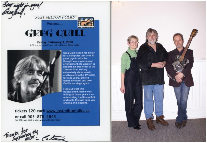 I used to regularly read Greg Quill’s music reviews in The Toronto Star, for whom he was the entertainment columnist. It came as a surprise that he was a musician in his own right, but when I found out, I couldn’t resist asking him to come be part of our series (he could write his own review if he wanted!) Greg was born in Australia, where he sang and wrote for the country rock band Country Radio, before moving to Ontario in 1974. On the night he played for us, he brought along (surprise!) his Aussie former bandmate Kerryn Tolhurst, and the two of them shared new songs, old songs, and lots of stories.