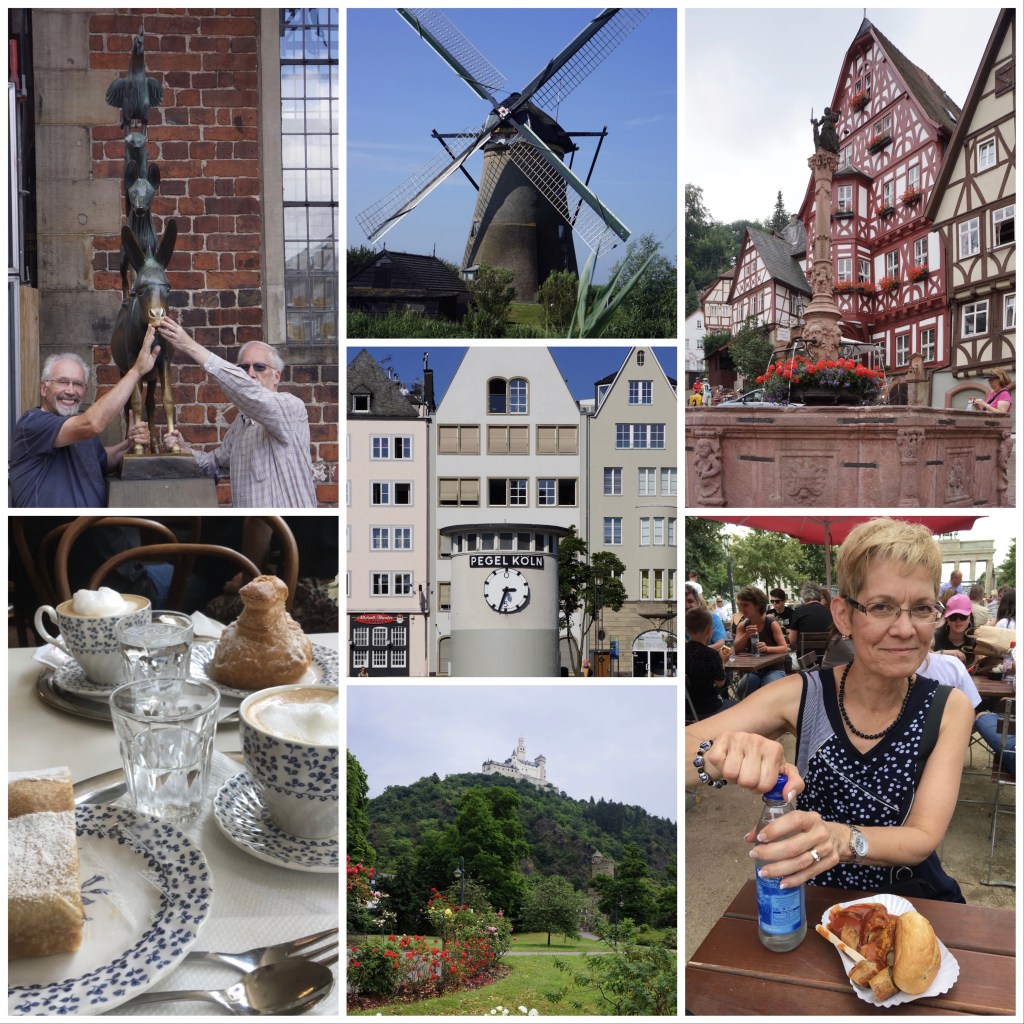 Bottom: coffee break in Vienna Austria (87); Marksburg Castle Germany (90); currywurst for lunch in Berlin (84).