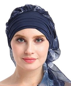 wearing the style of headscarf I’ve packed to cover my short hair.