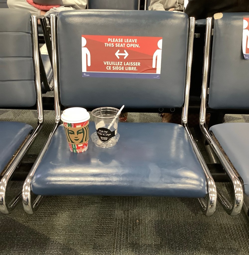 Unfortunately, the Business Class lounge is in the portion of the terminal designated for “international” flights – and flights from Canada to our U.S. neighbours don’t qualify, leaving us at the mercy of the Toronto airport’s food vendors, who are notoriously high-priced in comparison to other airports through which we’ve transited. $11.50 CAD later, I was in possession of an 8 ounce fresh fruit cup and a 12 ounce black coffee. Sheesh.