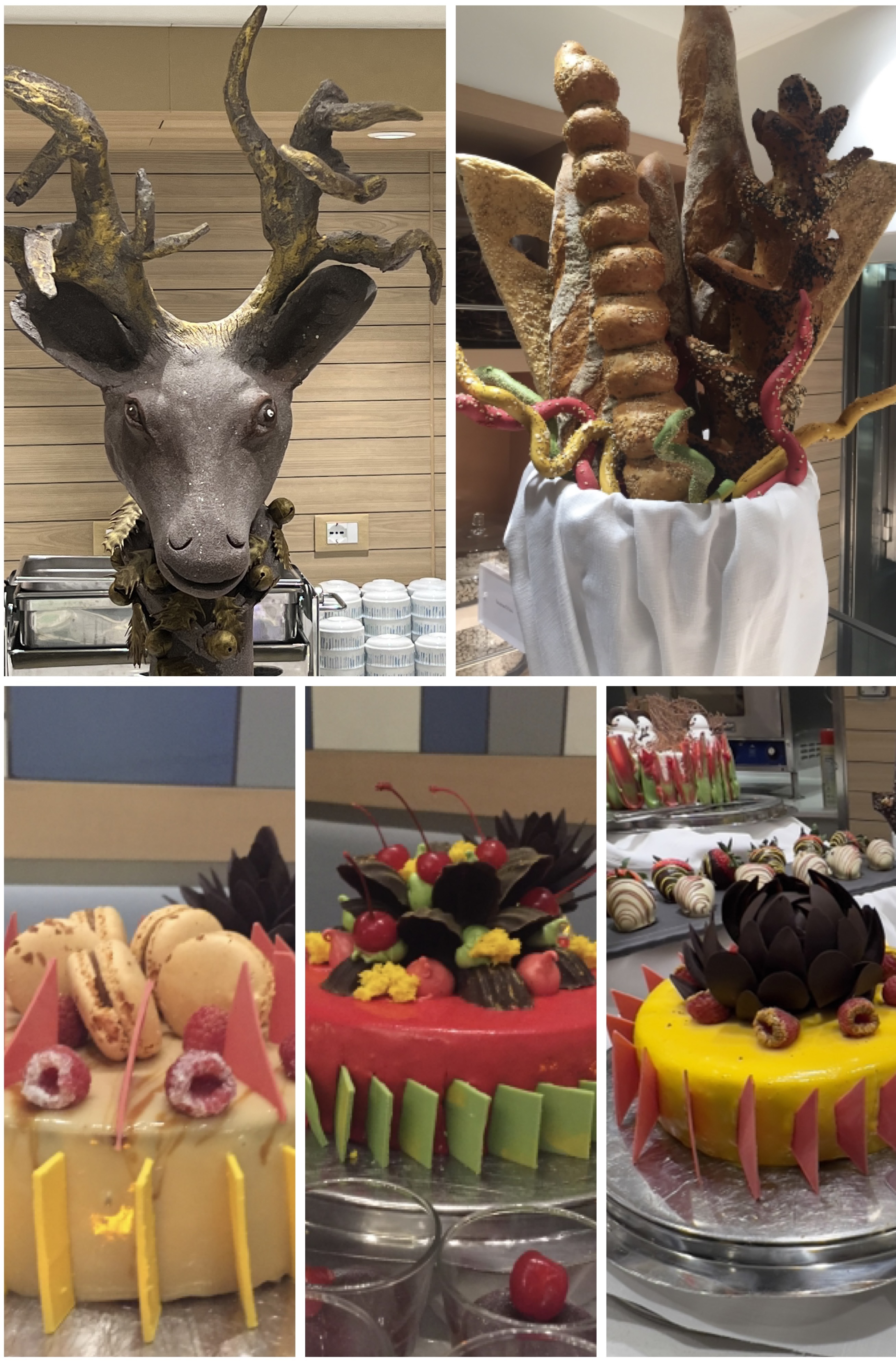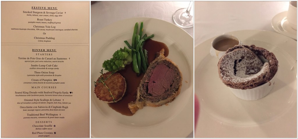 Pre-dinner entertainment in the Atrium was – naturally – Christmas carols, accompanied by eggnog and mulled wine, but we bypassed that in favour of checking out the Christmas chocolate dessert display before it was ravaged.