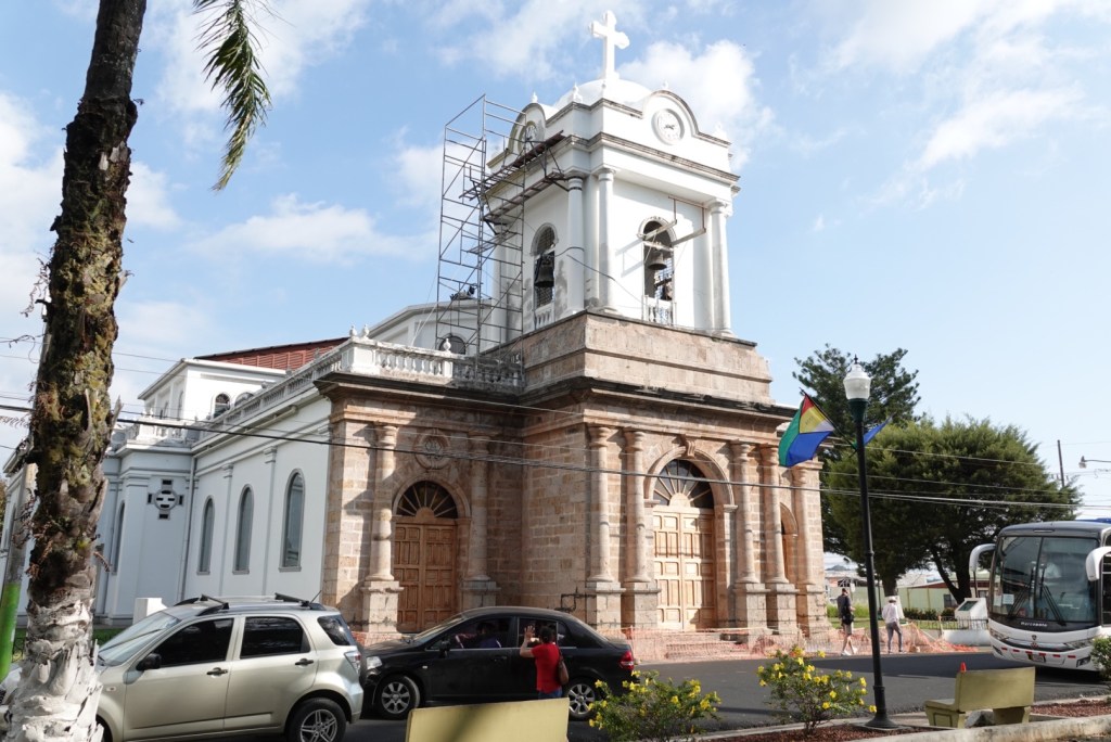 On arrival in Esparza, we parked in front of the historic Catholic church, which is undergoing major restoration. It’s Sunday – if I had realized the church would only be open during morning mass, I might have chosen an earlier tour. Unfortunately, I could only stretch and peek in the side entrance to get a glimpse of what looked like a particularly gorgeous sanctuary.