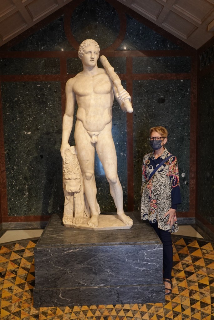 Ted took a picture of me beside the marble Lansdowne Hercules (Roman aro. 125 AD) just to demonstrate how large it is.