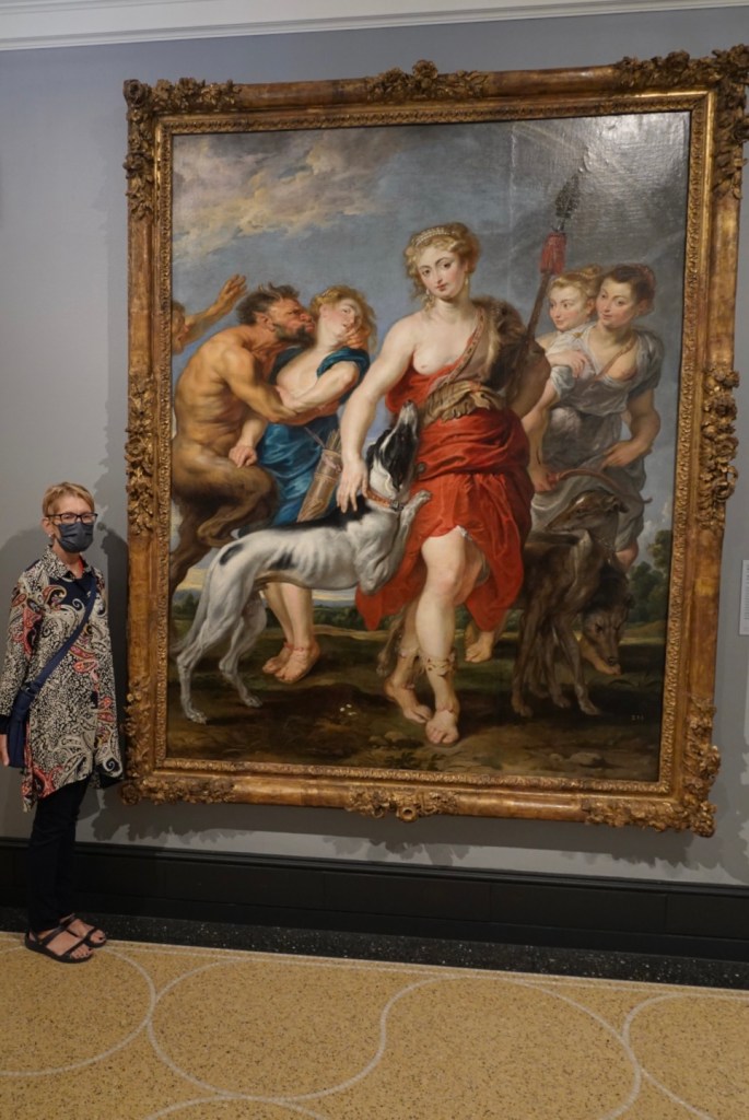 We were also lucky enough to be able to see the temporary Peter Paul Rubens exhibit, here for only 2 more weeks. The focus of this huge exhibit was Rubens’ work based on his interest in ancient Rome, with many of the paintings and sketches done in the years he studied in Italy. What Ted and I find endlessly fascinating about Rubens’ large paintings, beyond the fact that they have survived 400 years, is that even when standing only inches away from them, we cannot see a single brushstroke. The result is almost photographic, most especially in the liquid look of a glistening tear, or the lifelike sheen of the whites of his subjects’ eyes. Then too, there are details like collar ruffles that look so real you’re convinced you could touch them and feel starched fabric.