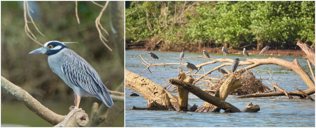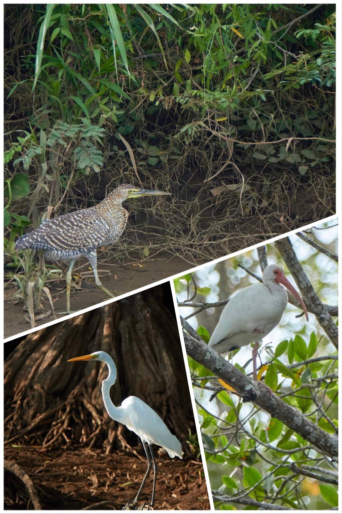 Bottom left: Tri-coloured Heron. Bottom right: juvenile Yellow-Crowned Heron