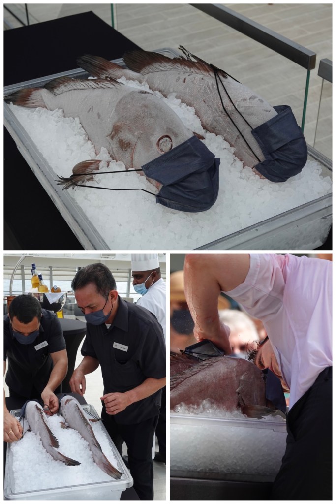 Once “cleansed” each new inductee into the Order of Shellbacks had to kiss the fish and down a shot of Aquavit. Don’t worry – the fish were masked as per Covid protocols. Safety first on the Viking Star!