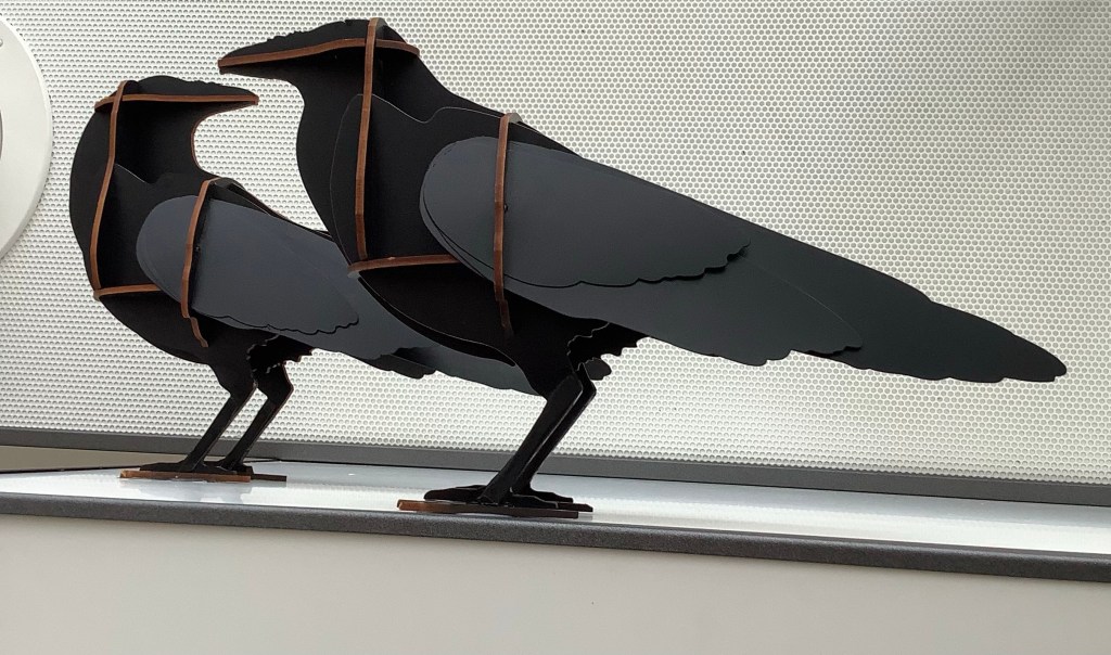 Odin’s two ravens Hugin and Munin (thought and memory) fly around the world and report back what they see. They’re perched in two corners of the Wintergarden. If they’re observing us, I wonder what they’re reporting.