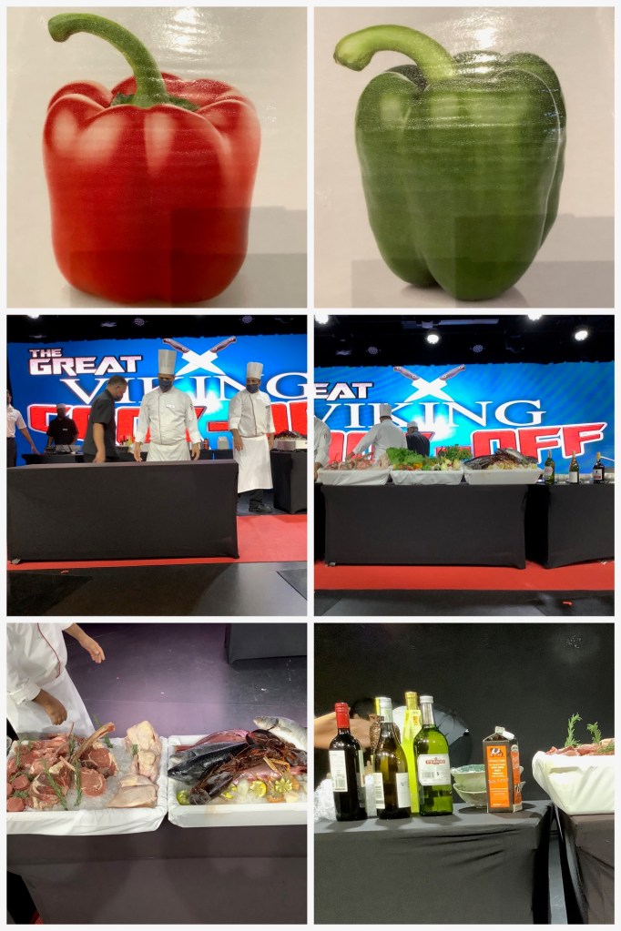 Bottom left: Captain Olav brings his camera to most of the events involving crew members and snaps lots of pictures – unless he’s involved on stage himself. Bottom right: our friend Karin (bravely) tasting Team Green Pepper’s dish.