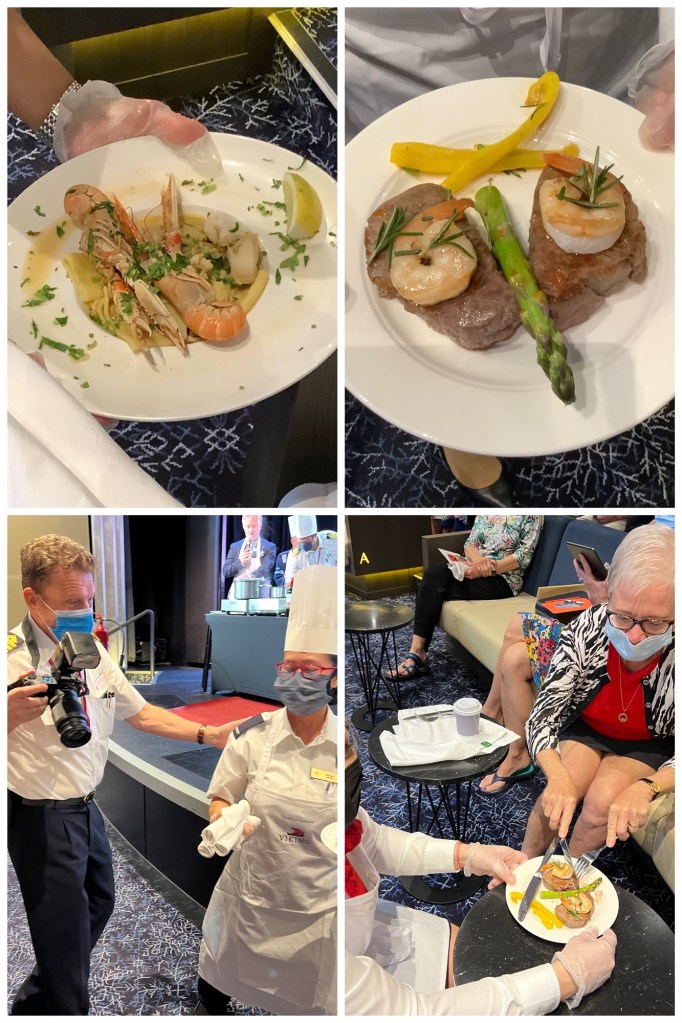 But first, The Great Viking Cook-off, where crew members with “absolutely no culinary experience” competed in teams against each other to create a culinary masterpiece from ingredients curated by Executive Chef Thomas. Their dishes were rated on taste, presentation, creativity, and teamwork.
