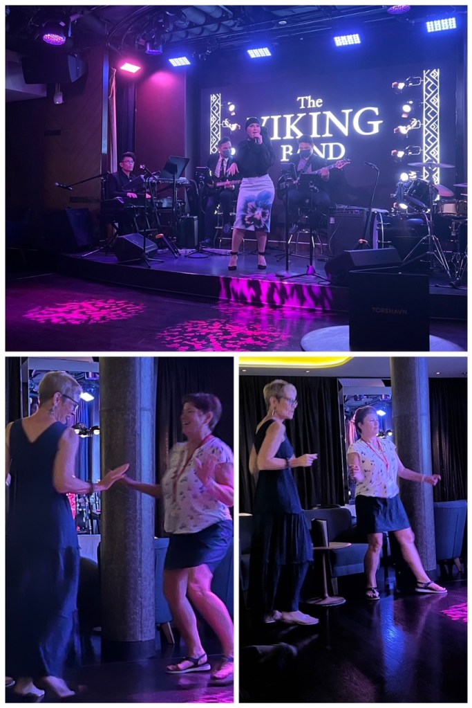 MORE KUDOS FOR VIKING: As I was sitting on the pool deck reading before lunch, Restaurant Manager Casper came to see me. I had put in a suggestion about one of the shipboard events, and NOTHING goes unanswered on a Viking ship. We chatted for a while, and I mentioned how impressed we were with yesterday’s galley tour, and the consideration with which Viking treats their staff. Casper shared that during the worst of the pandemic, he was on the Jupiter, along with just 100 crew (the normal complement including contract staff is around 450 for a ship full of passengers). All of the crew came onto the ship as equals – no “stripes” on their uniforms – and everyone did every job. Although Casper is a 3-stripe manager, he took his turn on each day’s duty roster: sanding railings, washing decks, flushing toilets and running showers so that pipes would stay clean, cooking for the crew, and more. It gave every crew member on board a real appreciation for what their teammates do. During that time, Karine Hagen (daughter of Viking’s owner) came on board – with a pair of thick Norwegian wool socks for each person – and cooked for the crew! Casper said she cooked food from each of the crew member’s home country AND learned enough of each language to at least be able to greet them in their own tongue. Once again, that’s the kind of hands-on involvement and care for their employees that keeps us loyal to Viking.