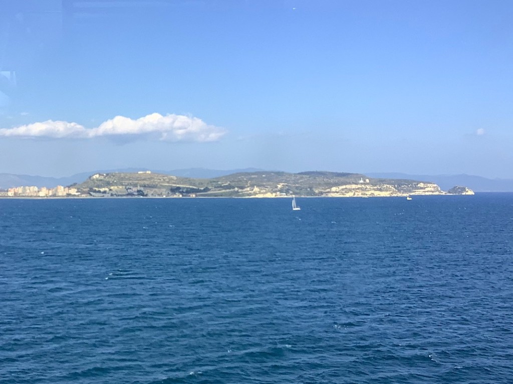 The advantage to leaving in daylight was this view, which looked more like what we’ve seen in travel brochures featuring Sardinia: beaches and sailboats.