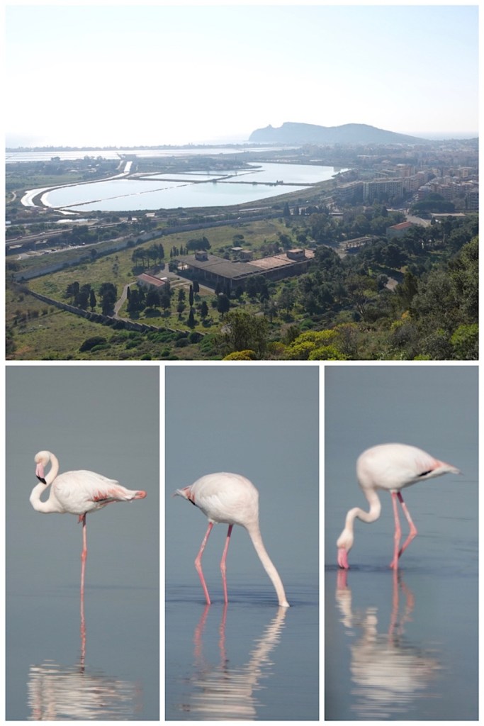 We had a short stop at the overview at Parco Naturale Molentargius Saline (Molentargius Salt Nature Park), which was a salt processing lagoon until the mid 1980’s when it was cleaned up and became a nature reserve and, shortly thereafter, home to up to 30,000 flamingos! It’s easy to see how shallow the lagoon and salt pans were when you realize that the feeding flamingos are standing on the bottom.