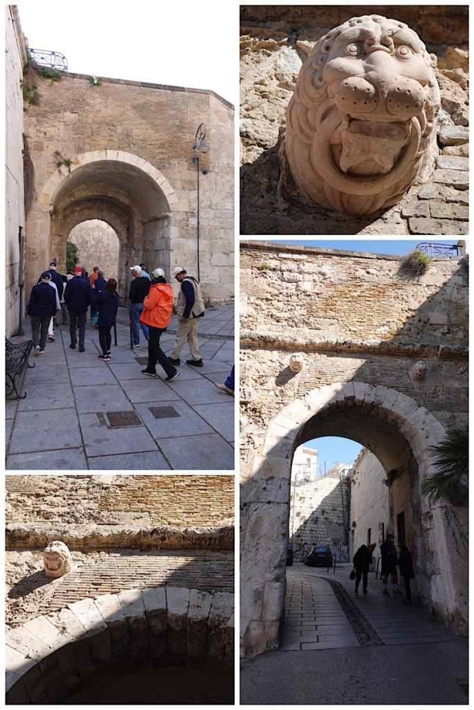 From Molentargius Park we headed uphill into the walled old town, the Castello. Like Rome, Lisbon, and Istanbul, Cagliari is built on 7 hills, which mean that roads and sidewalks all seem to be sloped.