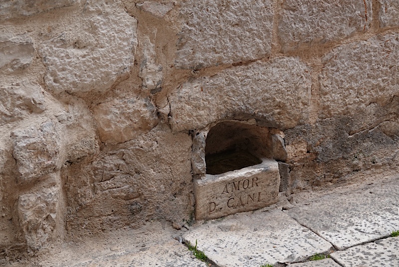 “Amor de Cani” water bowls, built right into the stonework of homes in the city, reflect more than just a love of animals. Having been severely affected by more than one plague, the inhabitants of Śibenik were also wary of diseases like rabies. Since rabid animals are known to suffer from hydrophobia, these readily available water dishes helped to identify healthy animals from sick ones by whether or not they drank water on hot days.