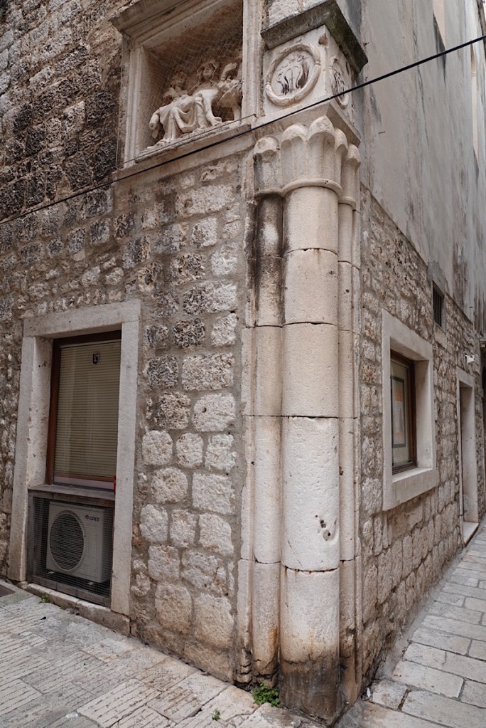 There were 3 particularly interesting features in Šibenik that we’d not seen in any of the other old cities we’ve toured so far: nobility pillars, dog water dishes, and electric lanterns.