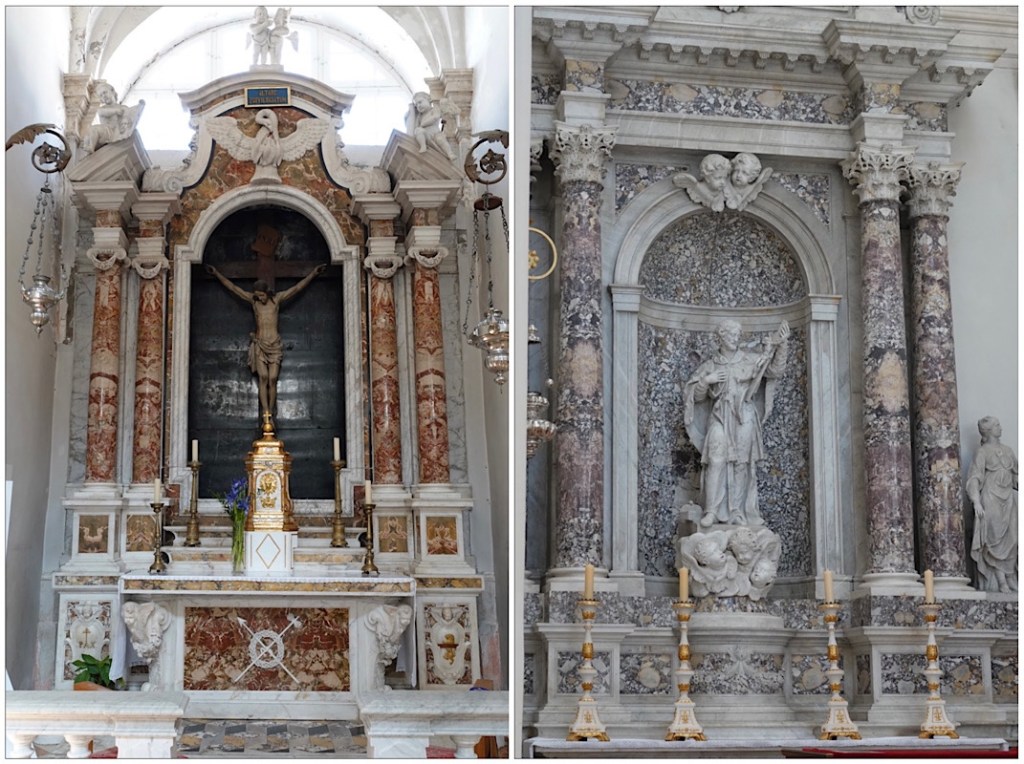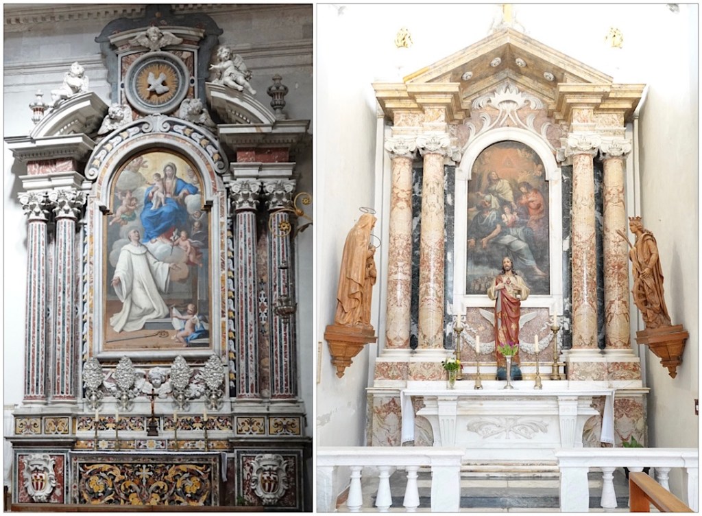 Two of the six side altars, each ornate and unique.
