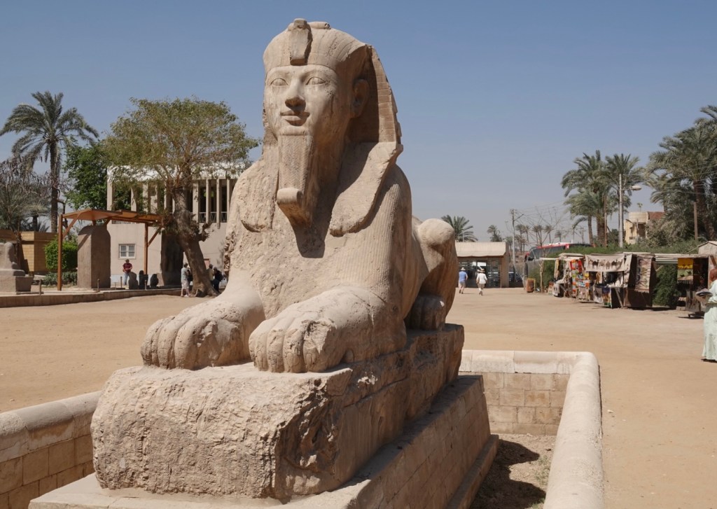 The Memphis sphinx is the second largest sphinx in Egypt, at about 80 tons if carved calcite, but no identifying cartouche remains on it to tell us whose face it is (i.r. Who it honours). Speculation based on its age is that it could be Hatshepsut, Amenhotep II or Amenhotep III.