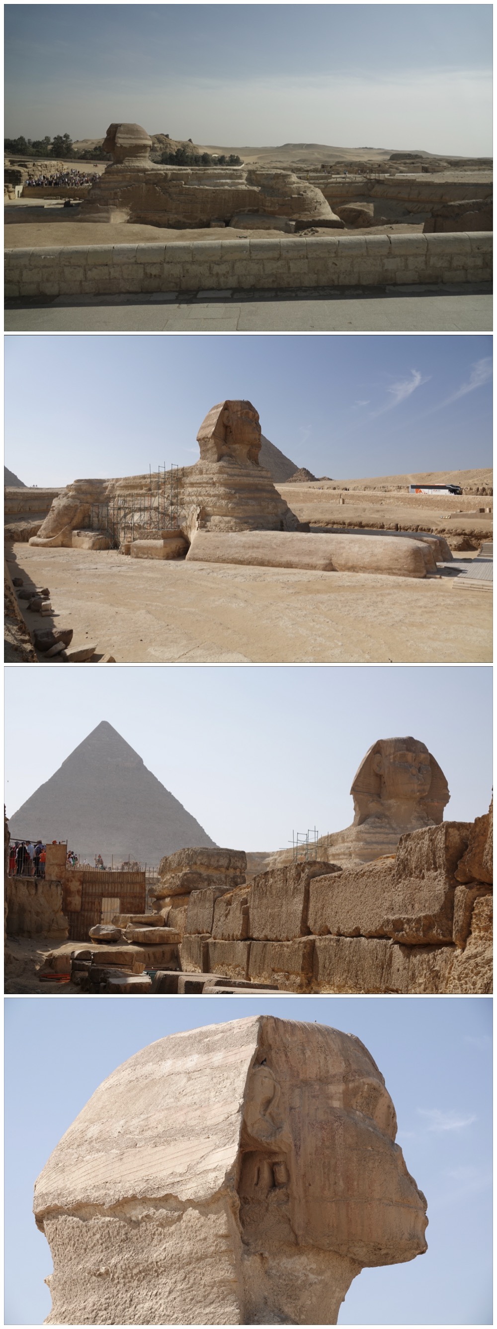 Our last stop, before a brief shopping option, was at the Great Sphinx of Giza, about 4500 years old and measuring 73 metres/240 ft long and 66 20 metres/66 ft high. Because we’re in Ramadan, the site was closing early. At 3:30 the afternoon calls to prayer began from all the surrounding mosques, supplemented by all of the site’s staff blowing police whistles to “encourage” tourists to leave promptly. We did.