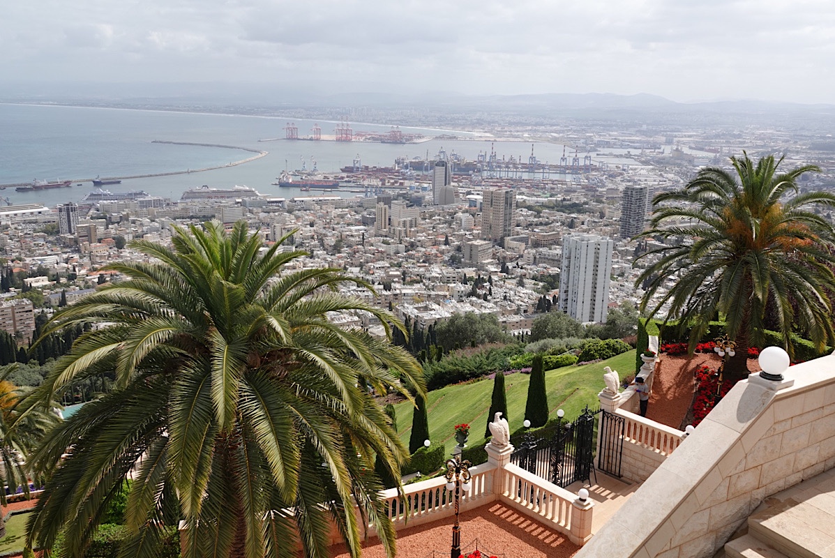 Since the gardens are considered a place of pilgrimage, no one except Baháʼí are allowed into the gardens without a specific reservation for a guided tour, but Ted got some lovely pictures from the lookout point, and we walked back through the German Colony later in the afternoon for a few from the other perspective.