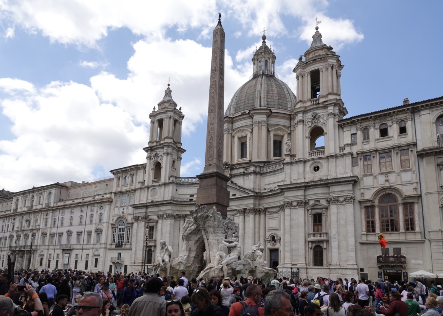 The twin churches of St. Peter and St. Paul in the Piazza del Popolo. Since “pagan” Rome had the legend of Romulus and Remus, Christian Rome also needed two patron saints. Note the Egyptian obelisk. There is one in almost every important square in Rome, brought there by successive Roman emperors. There are 13 in total in Rome – more than there are remaining in Egypt!