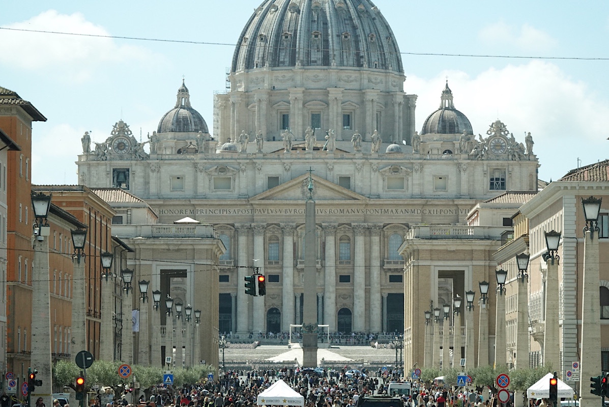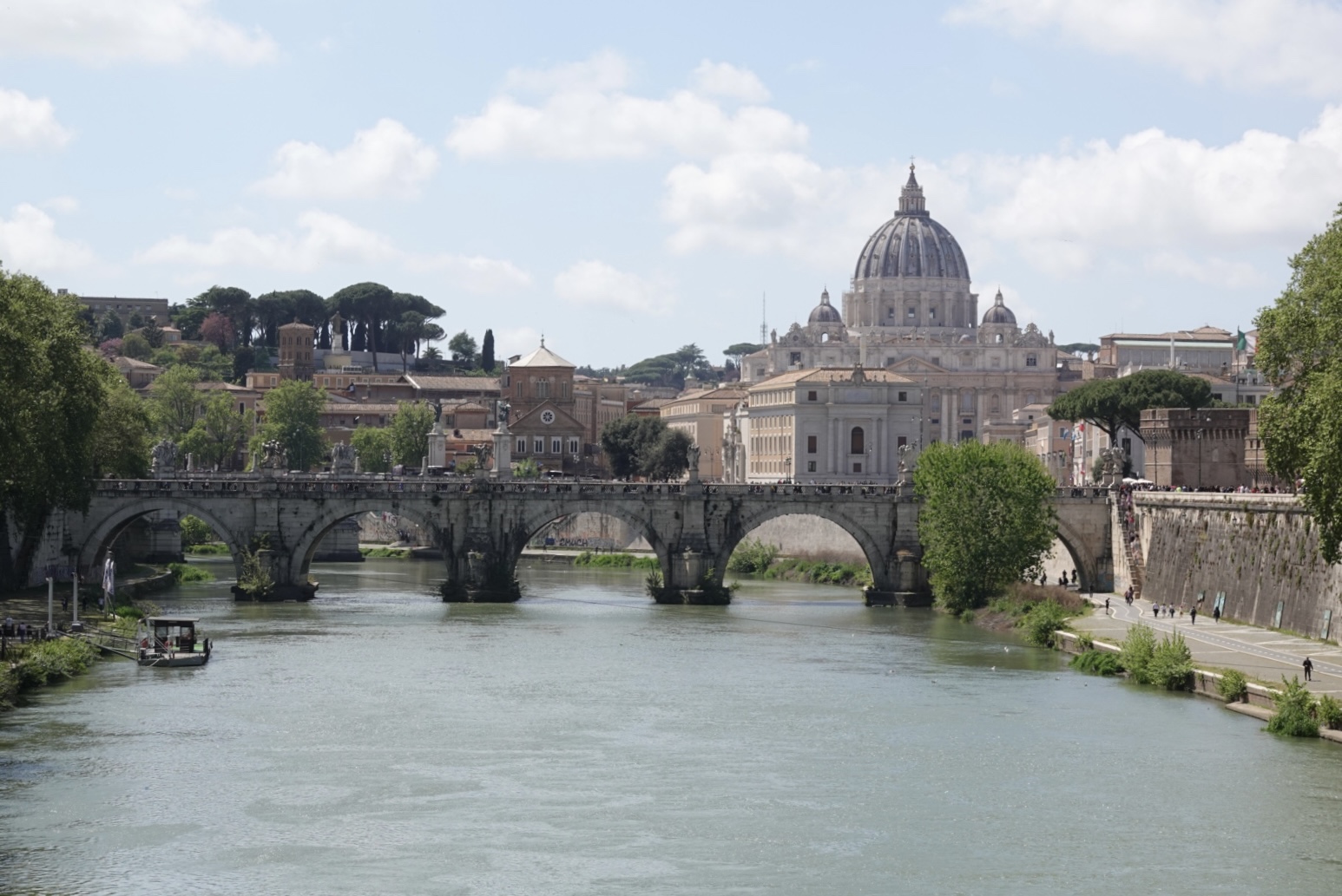 As we walked across the bridge spanning the Tiber River, we had a great view of the dome of St. Peter’s Basilica.