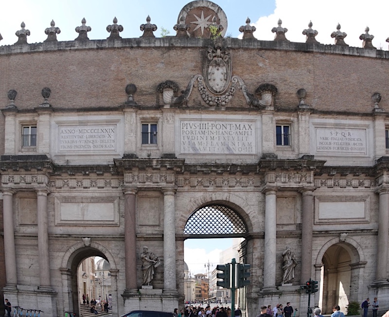 The entrance to the Piazza del Popolo (People’s Plaza).