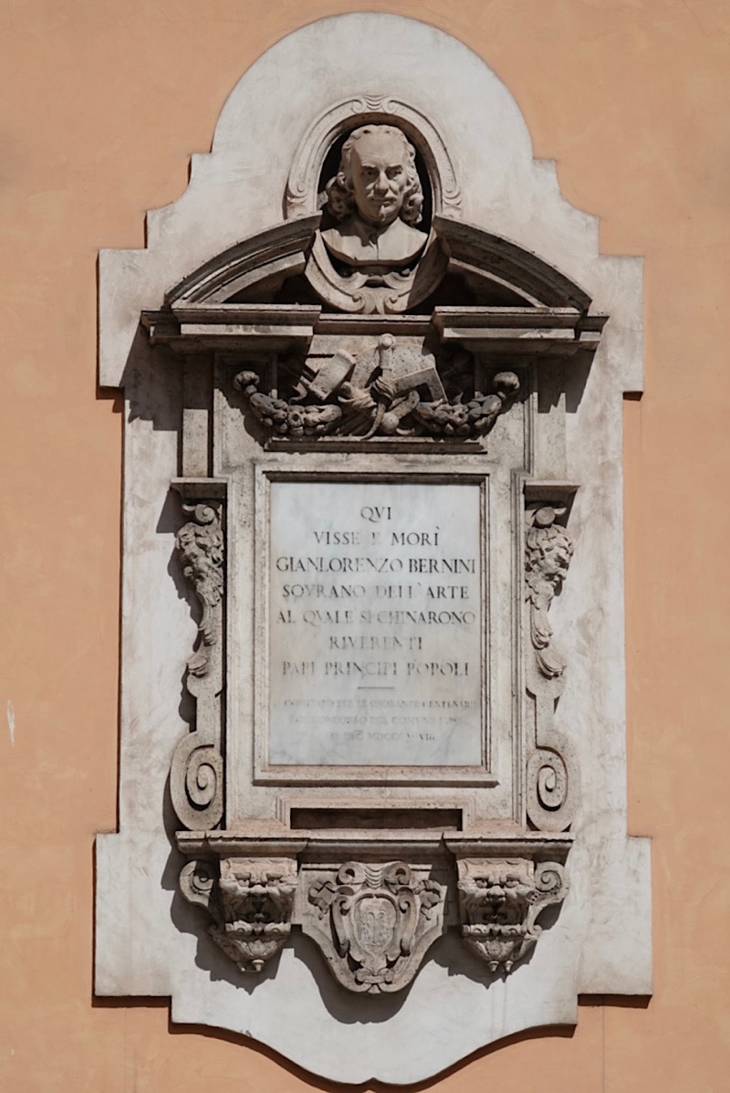 Marble plaque on the residence of Gianlorenzo Bernini, architect of many of Rome’s most iconic buildings. He designed St. Peter’s Square and St. Peter’s Basilica, among others, and is credited with being the “creator ” of the Baroque style of sculpture.