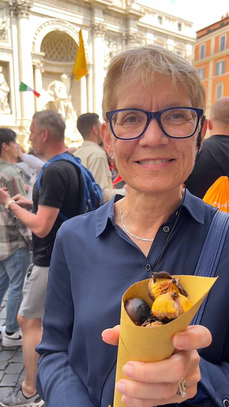 Me in my happy place. What could be better than eating a paper cone full of freshly roasted chestnuts bought from a Roman street vendor?