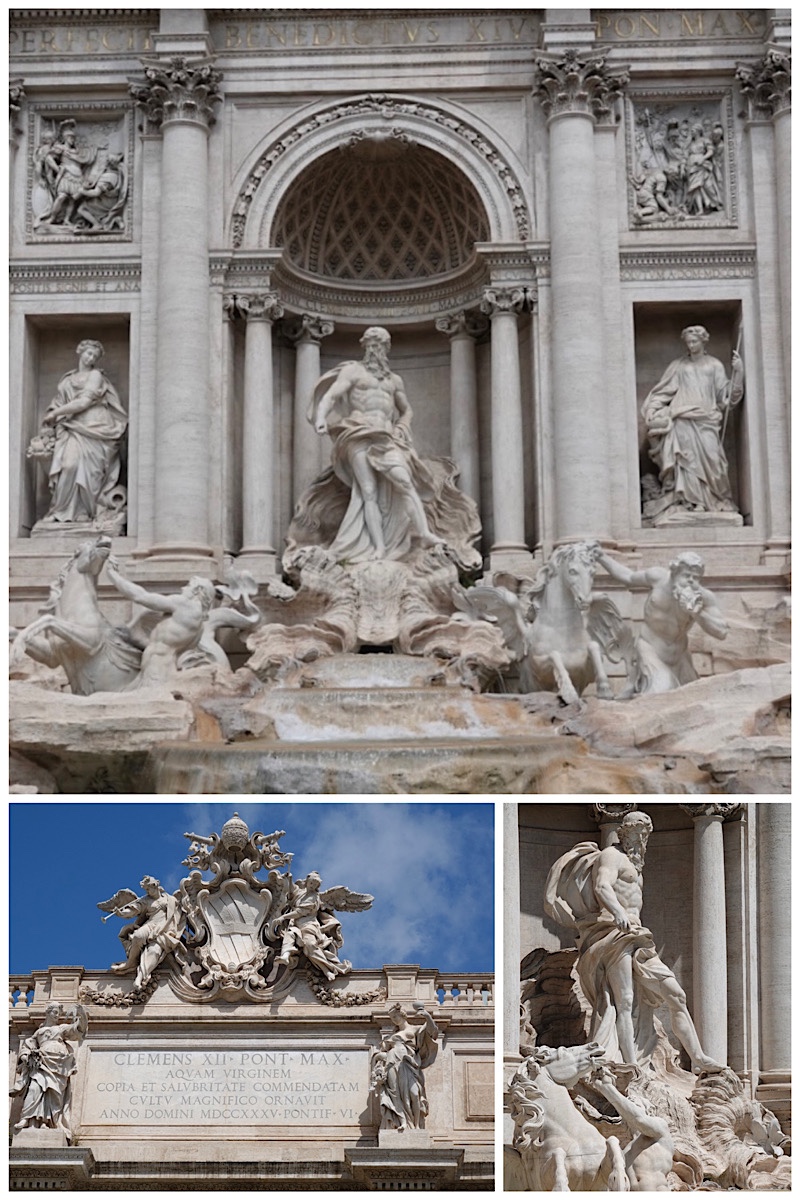 Zoomed-in on some of the Trevi fountain’s sculptures: